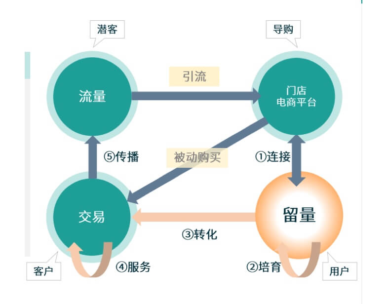 的生命周期,进一步分为:潜客、新客、老客、活跃期老客和沉睡期客户,通过分析客户的活跃、复购等情况,倒推用户标签和产品,双向互导。